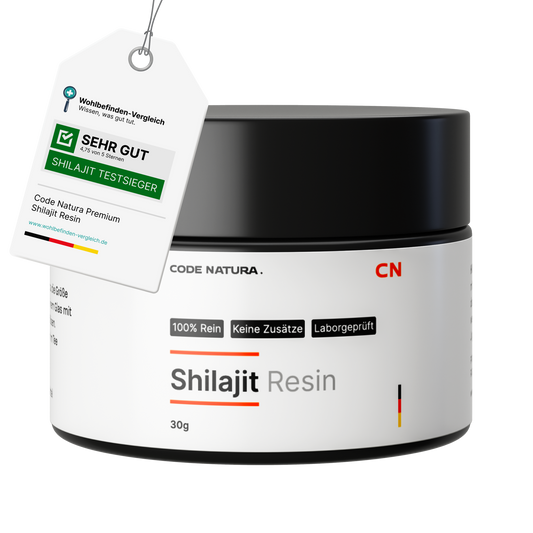 Code Natura Premium Shilajit Resin contains over 80 minerals as well as valuable fulvic and humic acids – 100% natural, not synthesizable, and lab-tested. Harvested at over 3,000 m altitude in the Himalayas, protected in violet glass. Pure resin instead of powder – for uncompromising quality.